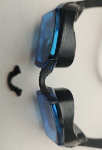 Painful fit — googles or lens shape poorly matching the swimmer’s face, caused by all kinds of variation in swimmers’ faces: every measurements of nose size, distance between eyes, size and depth of eyes and sockets….), this leads to pulling the straps more tightly to stop leaks, a more painful fit, and suction marks of the tight lens and gasket around the eyes, possibly lasting for hours after the swim — the dreaded raccoon eyes.